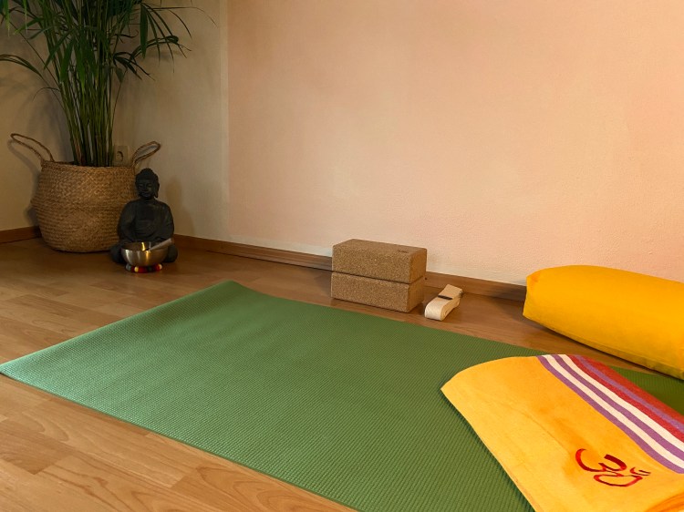 Für die Yin Yoga Stunde benötigst du verschiedene Hilfsmittel, wie eine Decke, 1-2 Yogablocks, deine Yogamatte, evtl. einen Gurt, Bolster, Augenkissen.